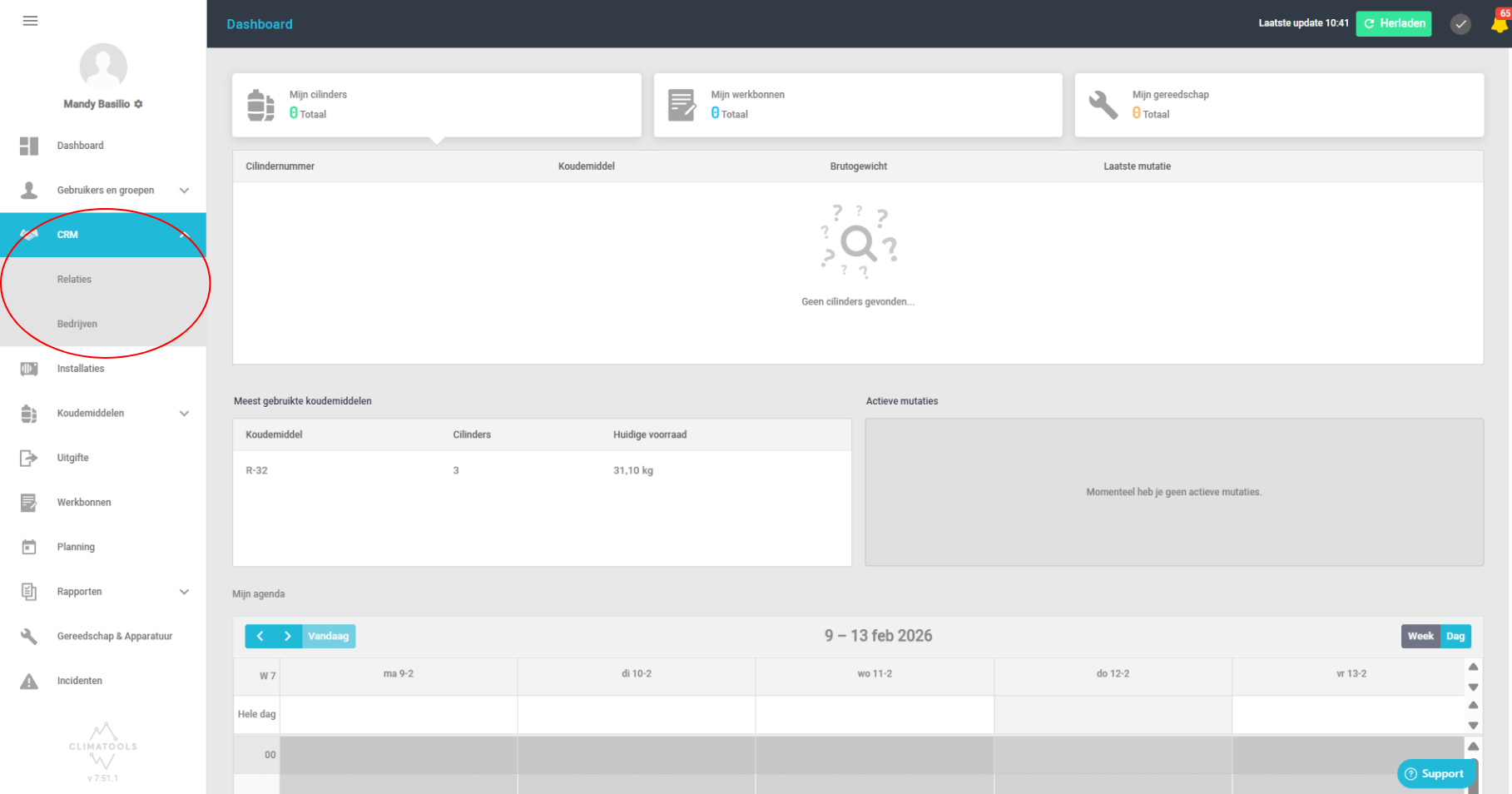 1. Ga naar het CRM in Climatools (relaties of bedrijven).